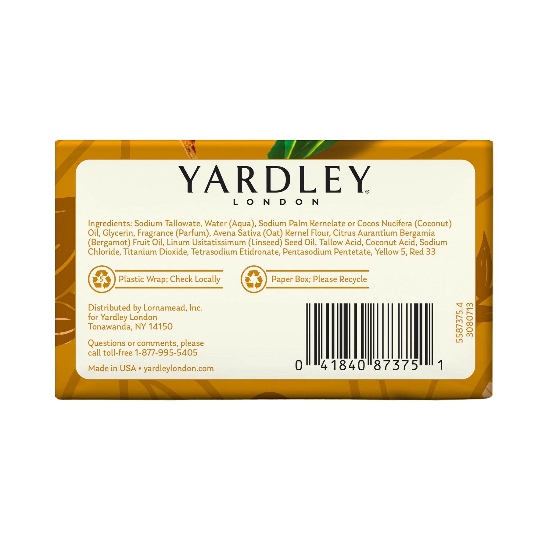 Since 1770, Yardley bath soaps have stood as a symbol of English luxury. Today that tradition continues with bath soaps crafted with essential oils and moisturizing ingredients that nourish your skin from the outside in. Yardley's Oatmeal & Almond Nourishing Bath Bar helps soothe dry skin and gently exfoliates with natural oatmeal. Yardley London Oatmeal & Almond Nourishing Bath Bar mixes sweet overtones of almond with natural oatmeal to gently cleanse; leaving you feeling soft, moisturized, and refreshed. And all Yardley bath soaps are free from parabens, free from sodium lauryl sulfate, and never tested on animals. Rich in lather and in heritage, a collection of Yardley bath soaps infavorite scents are the perfect gift to yourself or someone you care about. Whether it's a luxurious weekend bath time or a quick daily 15-minute escape, our aromatic scents and natural ingredients work in perfect unison to gently yet effectively cleanse and care for precious skin.Specifications