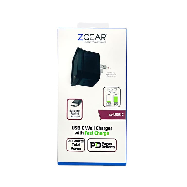 Shop by Department | Electronics | Cell Phones | Cords & Chargers | ZGEAR 20W TYPE C SINGLE PORT WALL CHARGER BLACK