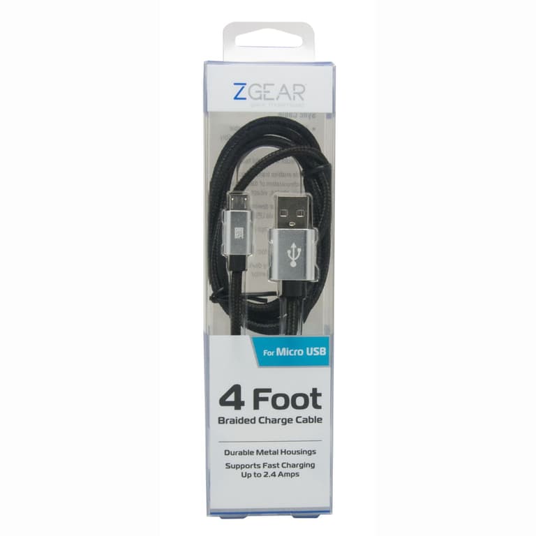 1 year limited warranty; 4 Braided Metal Tip Micro Charge & 4 feet of cable; Case friendly slim tip; Charge personal devices from any USB port; Durable tangle resistant cable; Sync Cable - Black