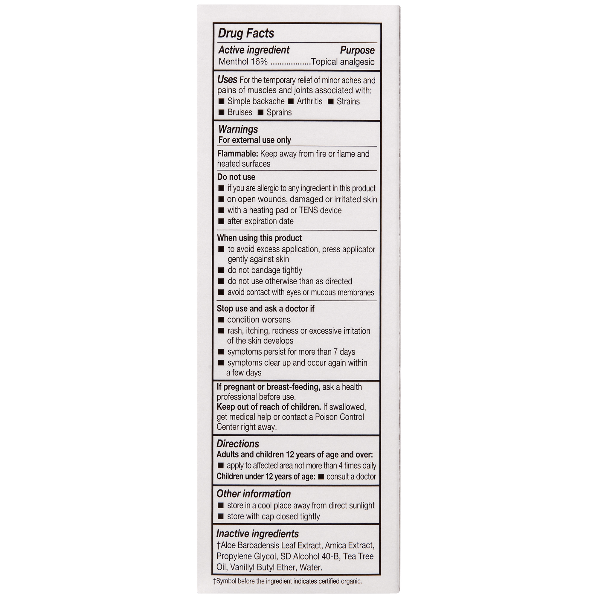 Cold therapy cooling liquid with 16% menthol; Deep penetrating pain relief; For the temporary relief of minor aches and pains of muscles and joints associated with simple backache, arthritis, strains, bruises, and sprains; Long neck bottle shaped for easy application; Max Freeze, PRO Formula; Sponge Applicator