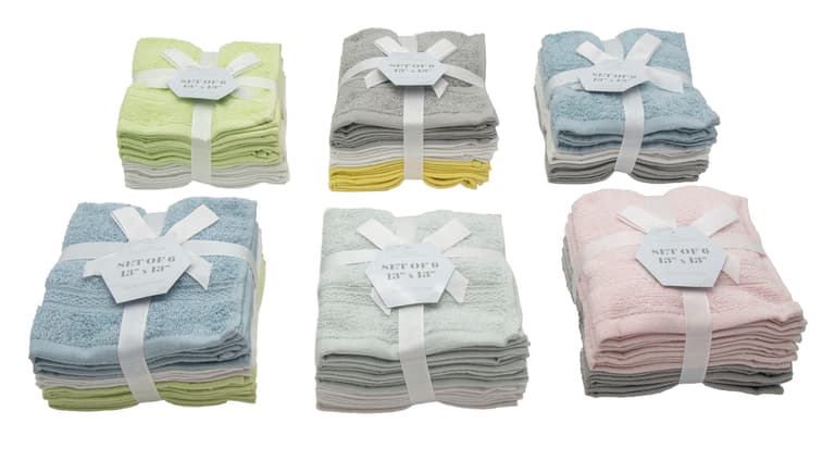 This set includes six washcloths, each made from 100% terry cotton that feels soft to the touch, making them a perfect pick for gently washing their skin. Featuring soft textured detailing in a solid hue, they blend with your bathroom decor and look great arranged with other washcloths or hand towels.Specifications